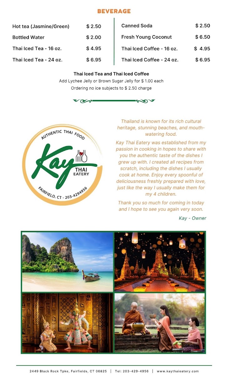 Welcome to Kay Thai Eatery, a delightful gem located at 2449 Black Rock Tpke, Fairfield, CT. This vibrant spot is a culinary love letter from its owner, who brings forth her passion for Thai cuisine straight from Seattle. Here, each dish is crafted with care and an abundance of flavor that resonates with diners.